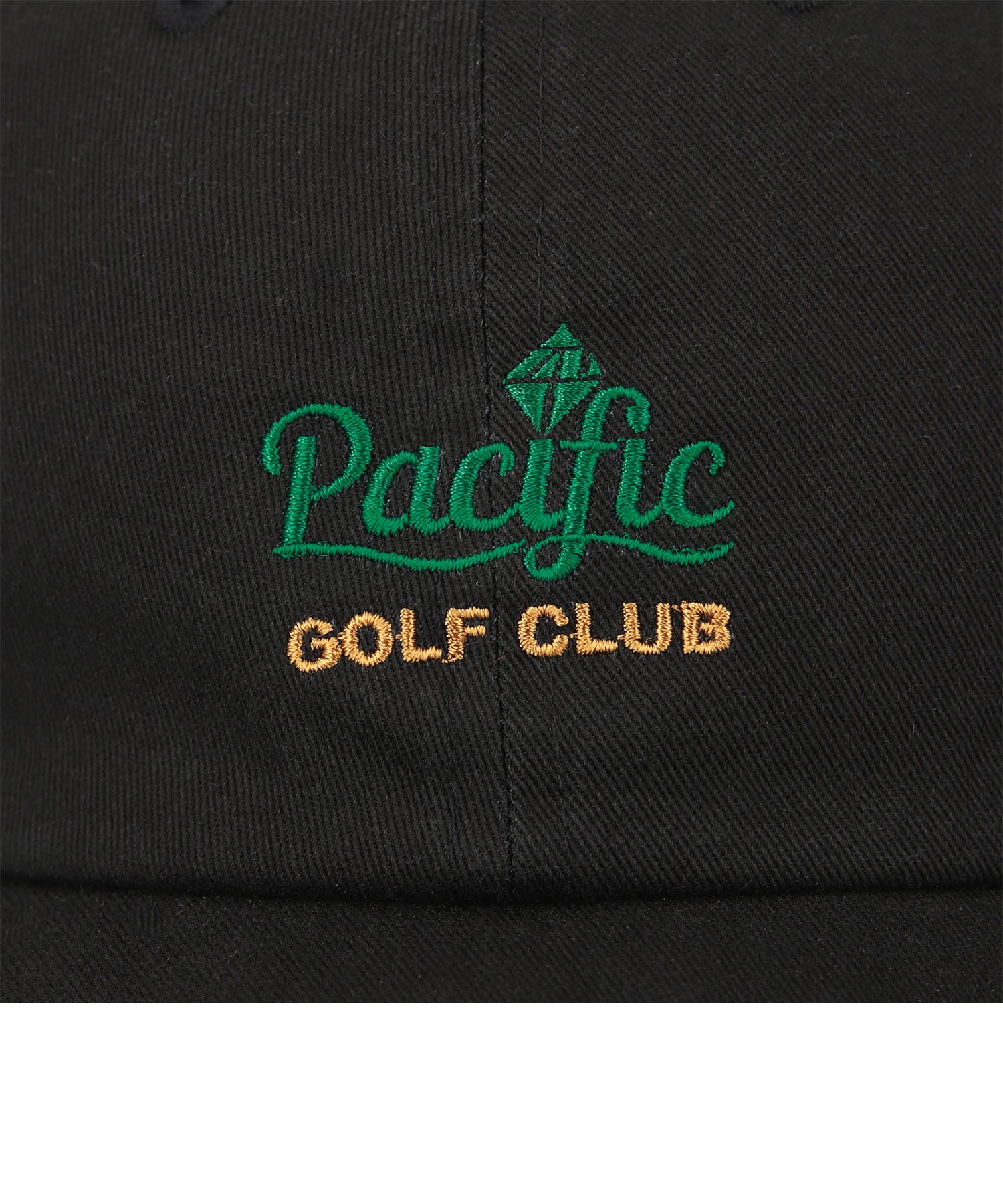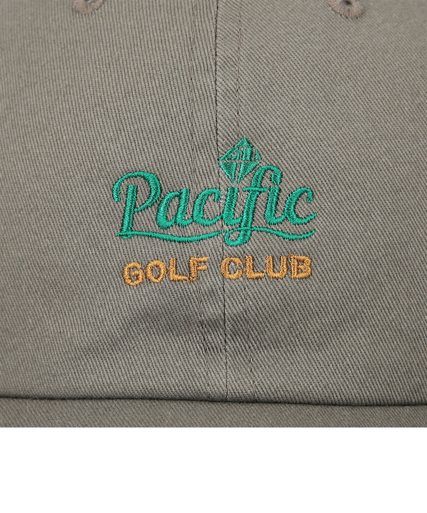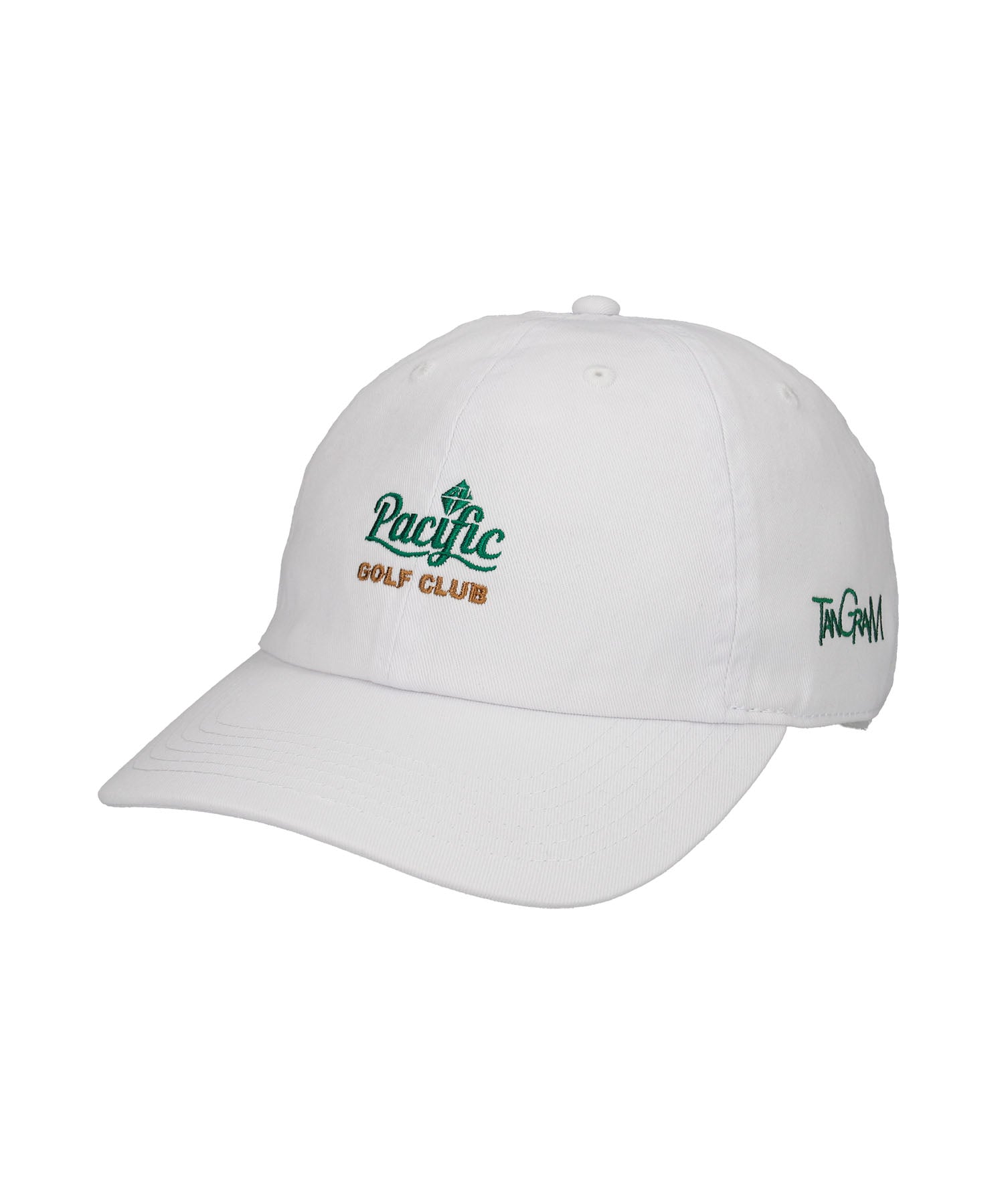 オリジナルコラボロゴやPacific GOLF CLUBのイメージカラーに配色したロゴを刺繍でアレンジしたツイルキャップ。