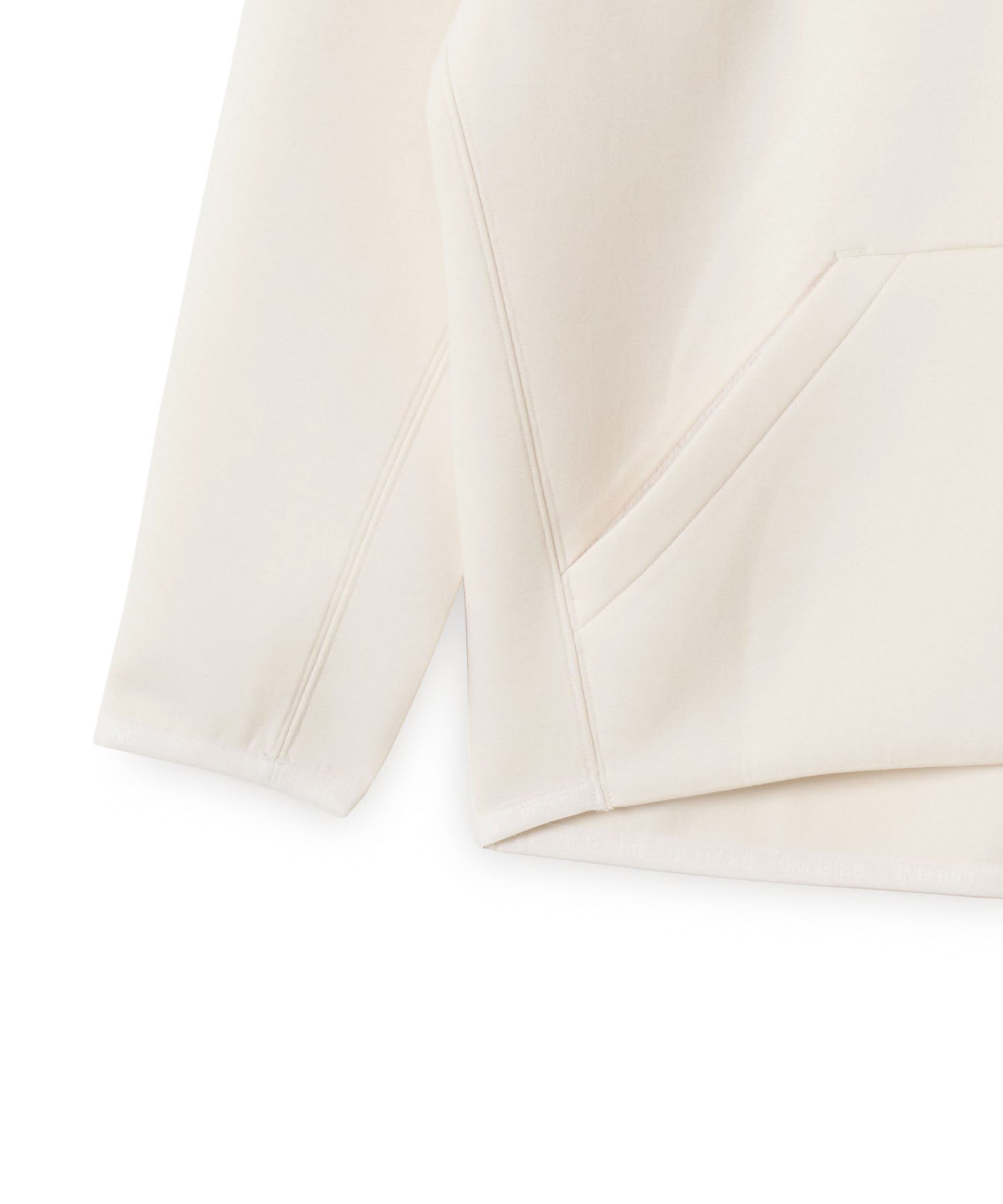 程よくゆとりを持たせたシルエットと切り替えデザインが特徴的なレディース プルオーバーフーディ。